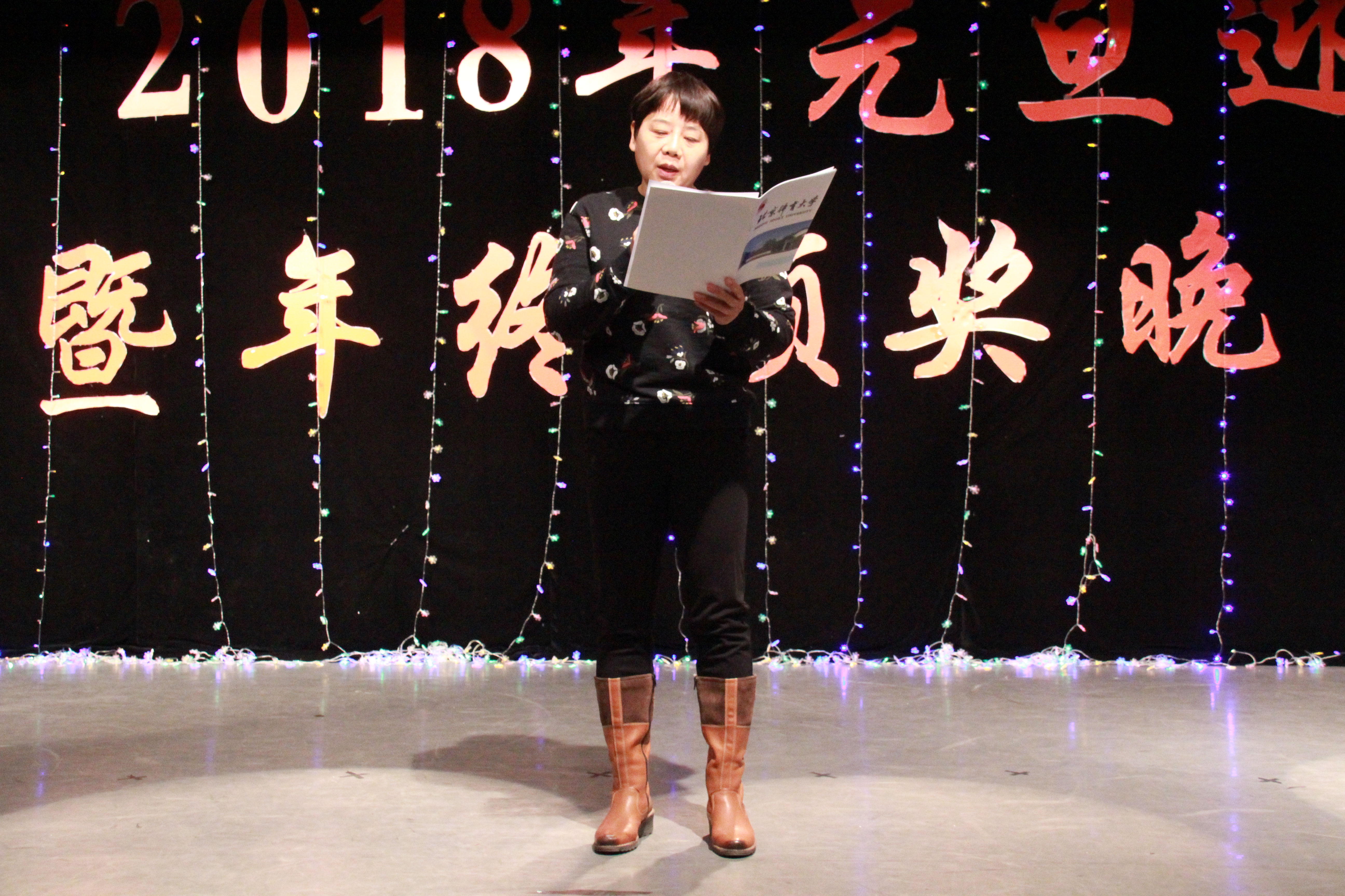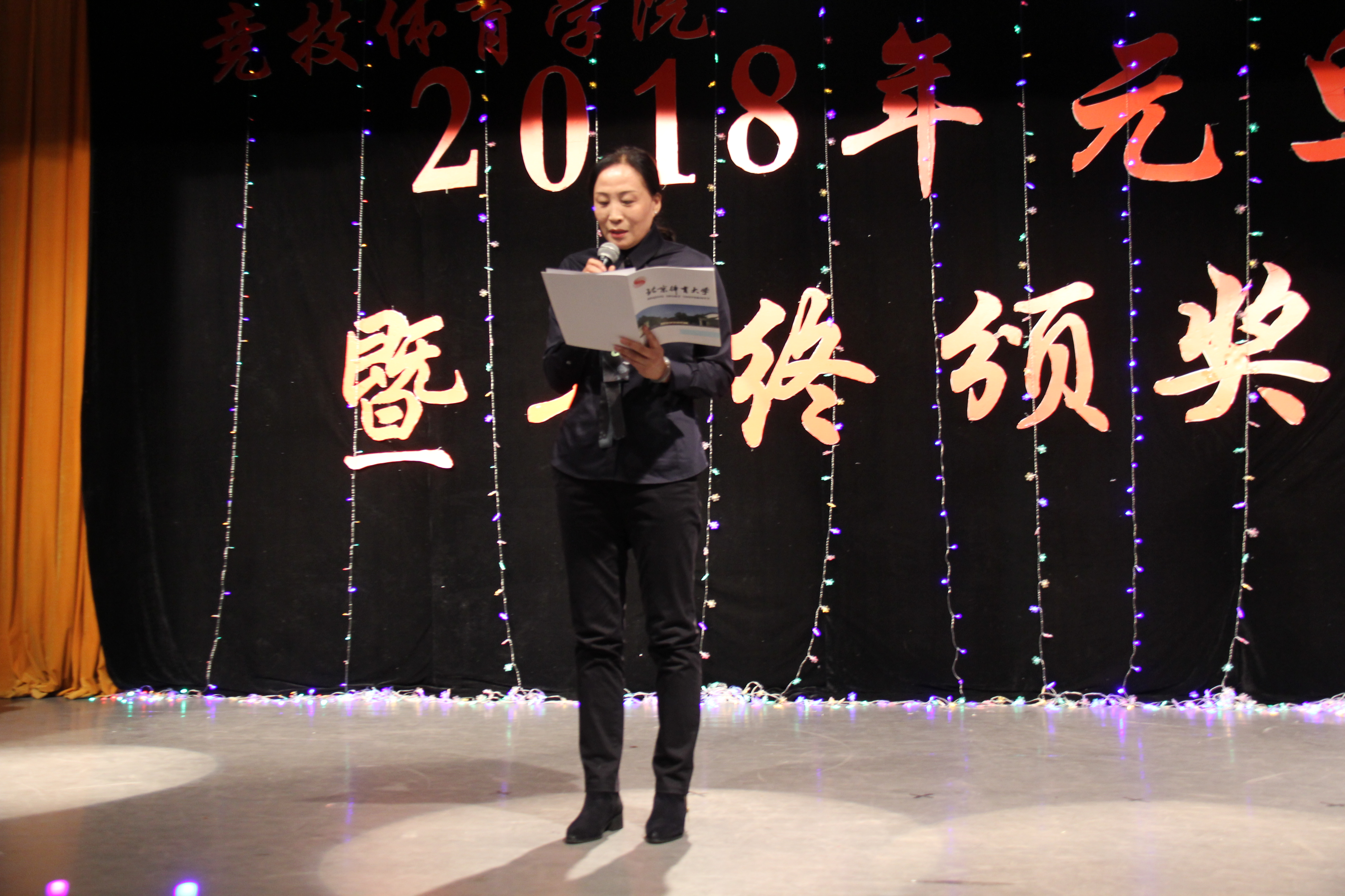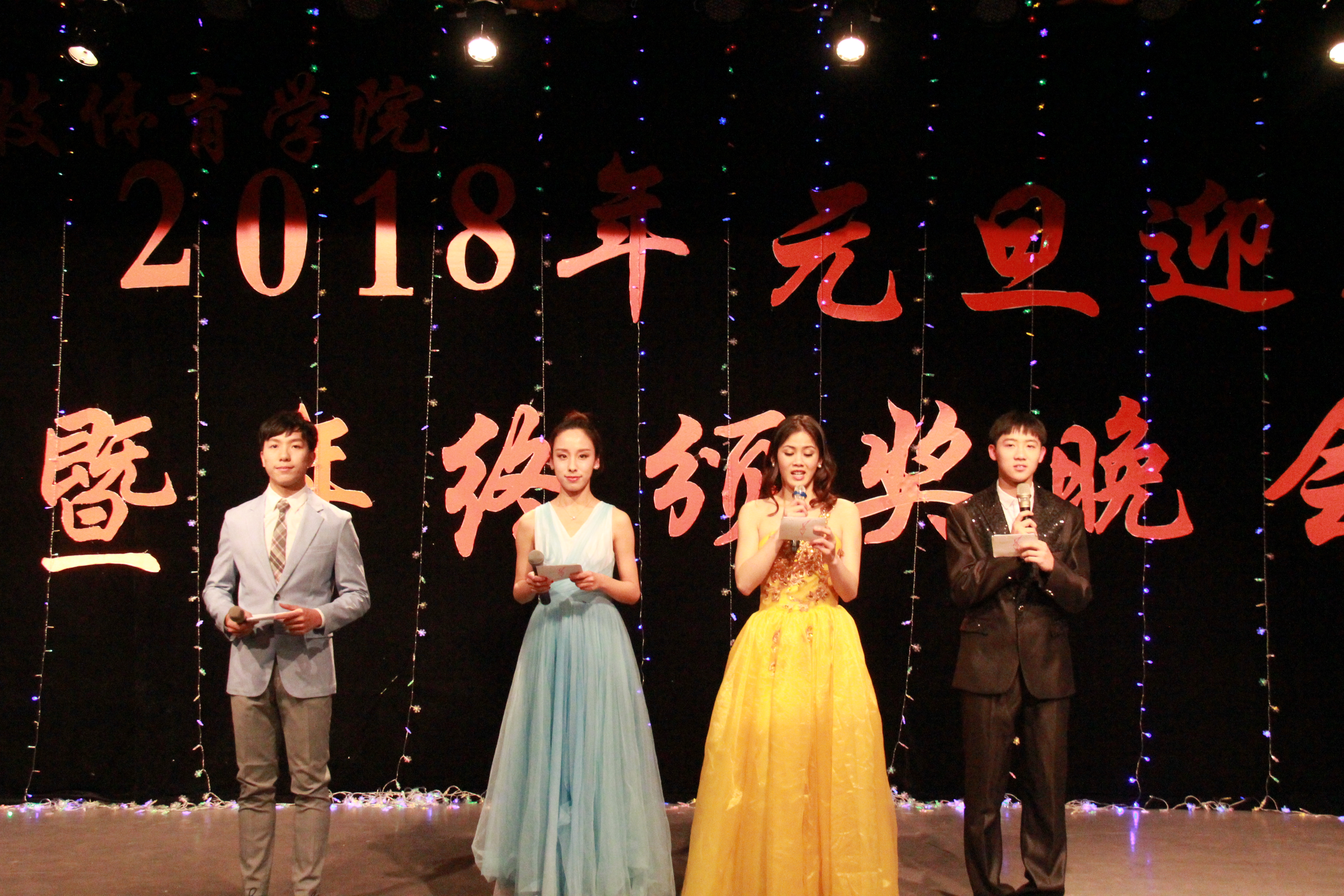 挥手2017,展望2018。晚会开始,首先由尚迎秋书记宣读表彰决议,随后由左琼副院长宣读表彰名单,马冰院长为2017年的工作做出总结,同时为同学们送出新春祝福以及未来期盼。