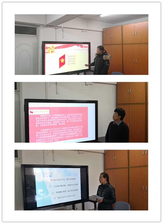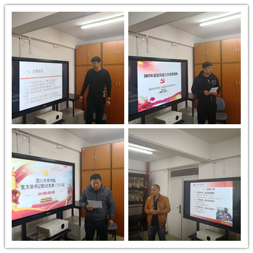 会议听取了田径、游泳、重竞技、运动训练党支部,2014-2017级本科党支部、2015-2017级硕士研究生党支部、2015-2017级博士研究生党支部共25位党支部书记党建工作述职报告,尚迎秋书记对各支部书记一年来的工作给予了充分肯定,同时对各支部在党建方面所存在的问题提出了有针对性的意见和建议。