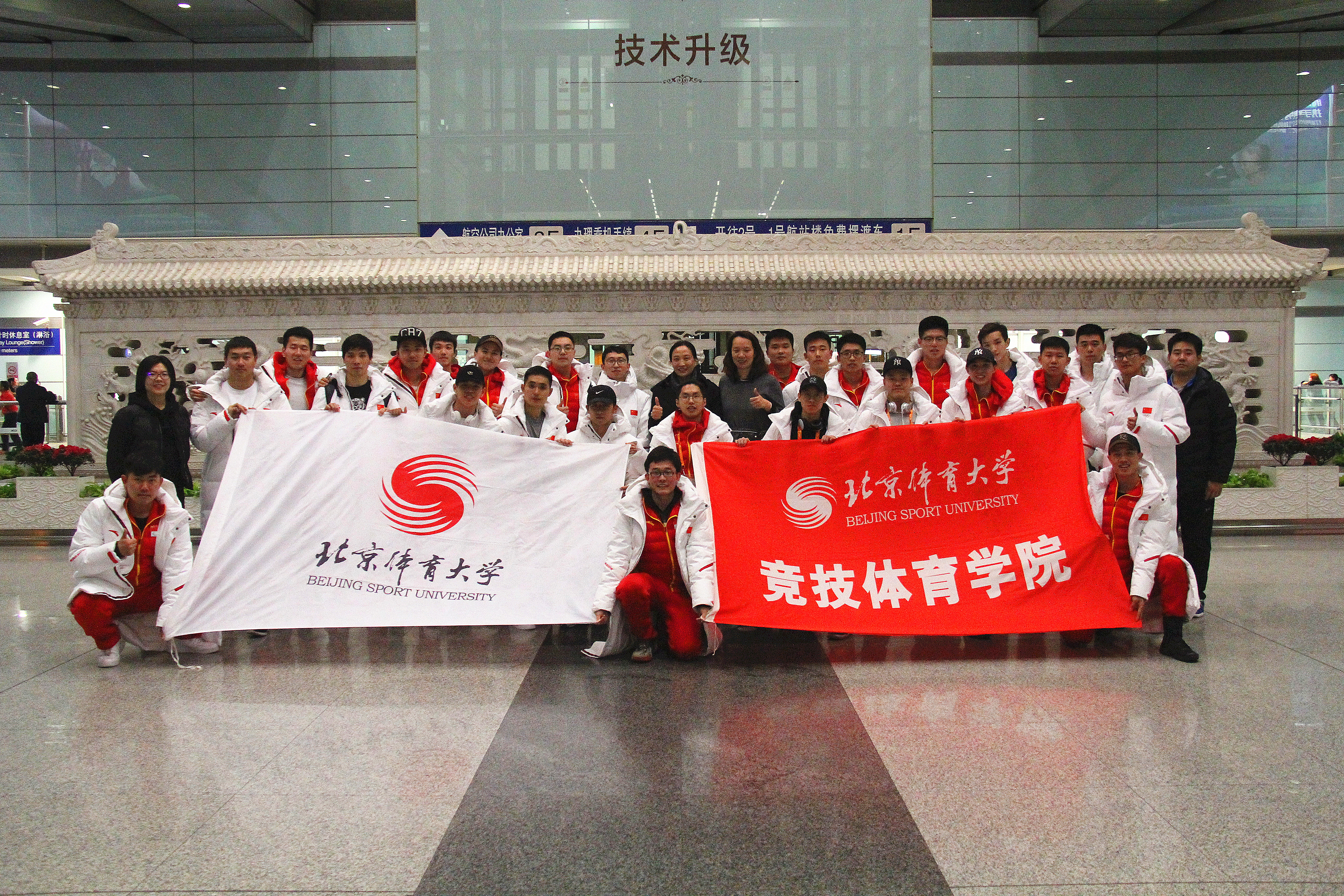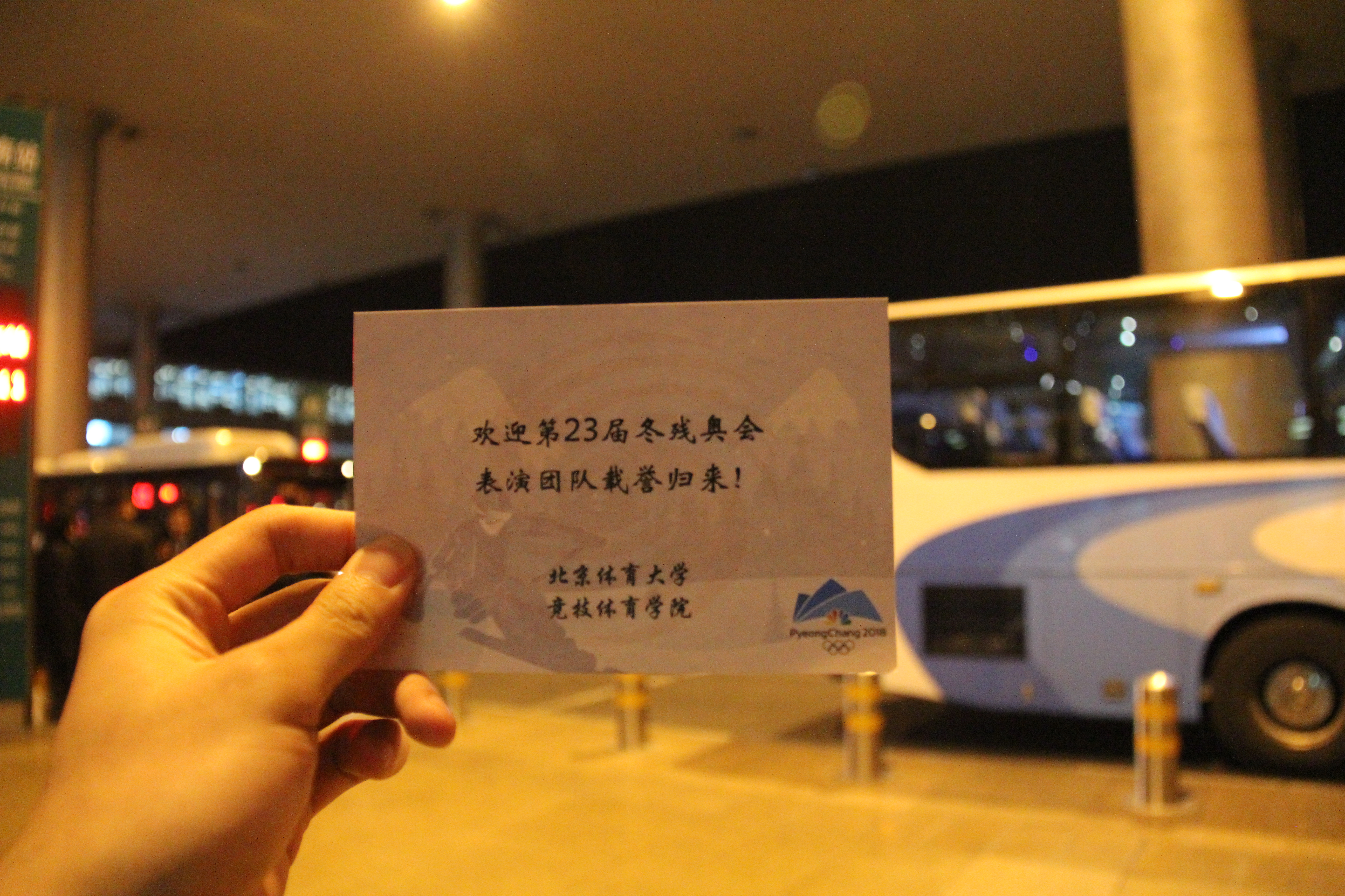 2018年3月19日晚,北京体育大学团总支副书记陈中老师,best365英国在线体育书记尚迎秋老师,best365英国在线体育办公室主任栾乐萌老师,best365英国在线体育团总支书记周凌瑞老师,在首都国际机场迎接我院参与第23届冬残奥会北京表演团队的26名师生。