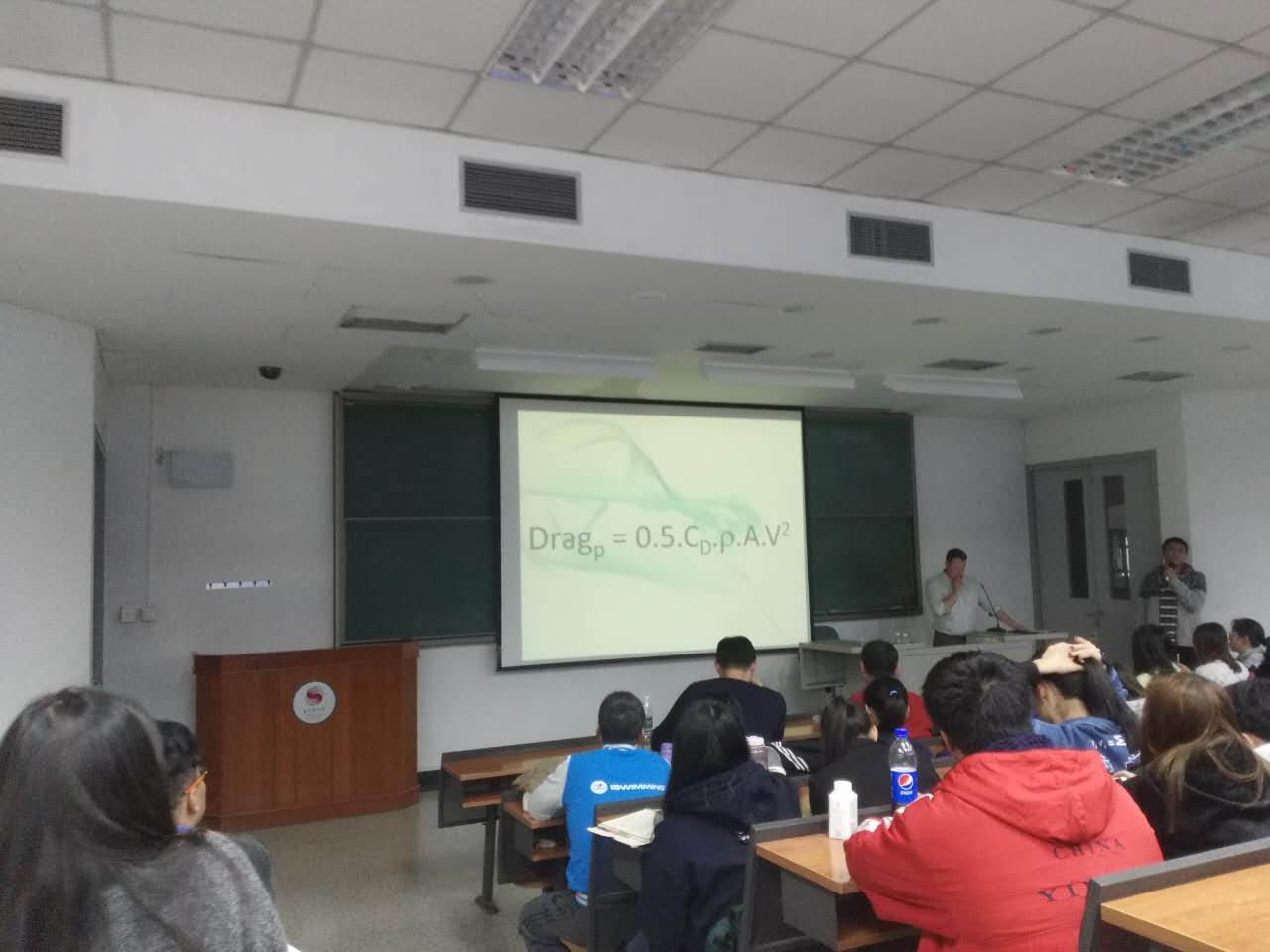 11月28日,安德森博士在教学楼413教室为游泳教研室教师、博士硕士和本科生进行了《流体力学与游泳技术》方面的讲座,主要从游泳技术的应用入手,讲解了游泳中的摩擦阻力、压差阻力和波浪阻力,进而展开了具体的讲解分析,例如:在1m/s的游进速度下,摩擦阻力占5%,压差阻力占15%,波浪阻力占80%,而在2m/s的游进速度下,摩擦阻力占3%,压差阻力占57%,波浪阻力占40%。并对其原理和差别进行了详细的讲解。在场的师生都认真学习,积极提问,现场气氛活跃。