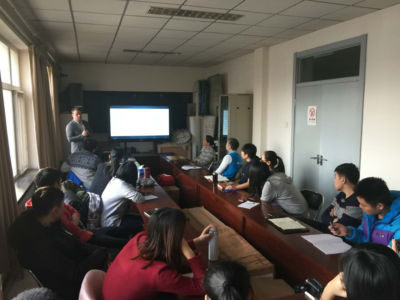 11月30日,安德森博士在游泳教研室会议室与教研室教师和博硕研究生进行了一次座谈,座谈会上安德森博士介绍了《数据的处理和应用》,主要介绍了几种处理大量数据的仪器设备,以及它们的原理和应用效果,大家都积极参与交流讨论环节,向安德森博士提出了自己的疑问,互相交流了认识和看法,参与座谈的师生都受益匪浅。
