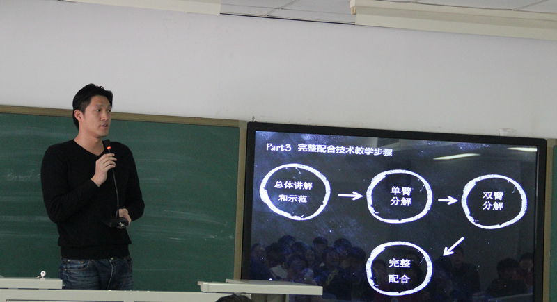 最后评审专家温宇红教授进行点评,从五个方面进行了总结。第一:学会如何引入课堂内容吸引学生眼球。表扬了邵艳、王大鹏以简短视频导入课堂内容,有效的调动了学生的积极性。第二:注重授课内容层层剥皮,引人入胜。张剑波老师让学生从每一个小故事领会动作的根本意义,启发性强,提高了教学质量。第三:师生适当互动。当课堂由老师主导演变成由学生主导,对于老师的教学方法有了更高的要求,老师必须运用更灵活的方式达到更好的教学效果。第四:突出重点和难点。第五:每位老师的小结都较精辟。