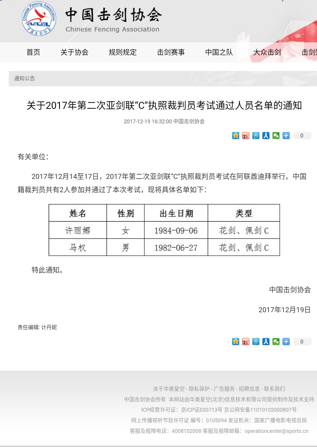 亚洲击剑联合会“C”级裁判考试于2017年12月14-17日在阿联酋迪拜举行,经中国击剑协会层层选拔推荐我院重竞技教研室击剑专项教师、校代表队主教练许丽娜同志代表中国前往参加了此次考试,并在考试中通过了花剑、佩剑的裁判等级考试。这也是该教师在之前已获得国际剑联(FIE)重剑国际级裁判等级后的又一突破,成为了国内为数不多的具有全剑种裁判等级资格的年轻女性裁判员。该同志之前已经执裁过女子重剑世界杯、亚洲击剑锦标赛、全运会等一系列国内外重要赛事。希望再接再厉,向北体大实现人才培养高端化、贯通化、国际化、协同化教育教学目标奋进!