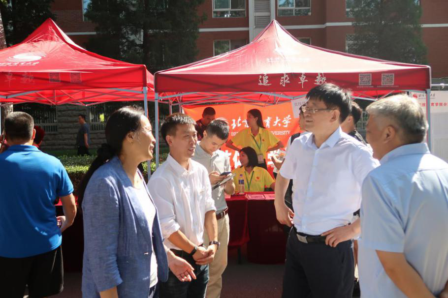 我院党总支书记尚迎秋、院长马冰在现场指导迎新工作,期间学校领导和相关职能部门领导先后亲临我院迎新现场指导工作,并与学生、家长进行沟通交流,解答学生和家长疑惑。下午18:00,迎新报到工作圆满结束,本次迎新工作顺利进行离不开志愿者们和老师们的辛勤努力,相信这次迎新工作做到了让家长满意,让学生满意,他们感受到了北体大的温暖,感受到了学院的关怀。