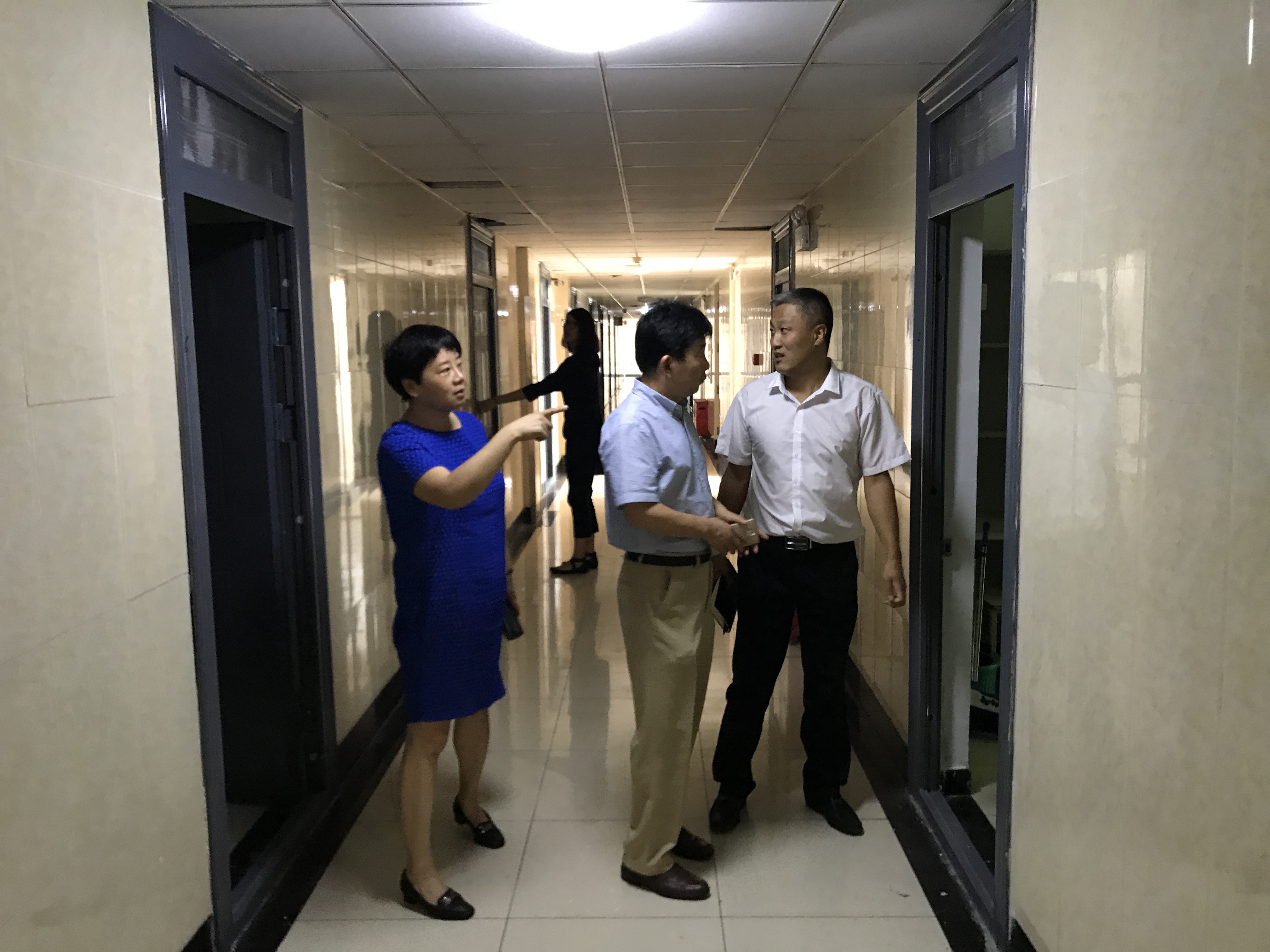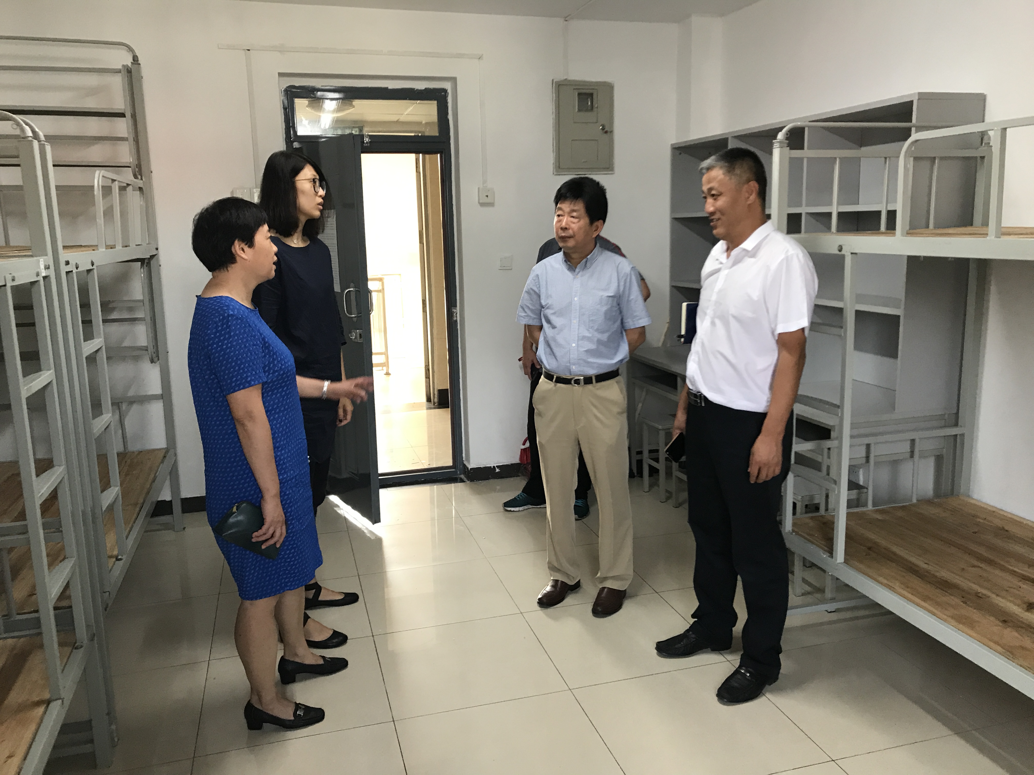 会后学院领导及2017级辅导员一同前往九号公寓,对新生房间卫生、电器、床位等进行了查看,确保新生入住时房间的整洁。