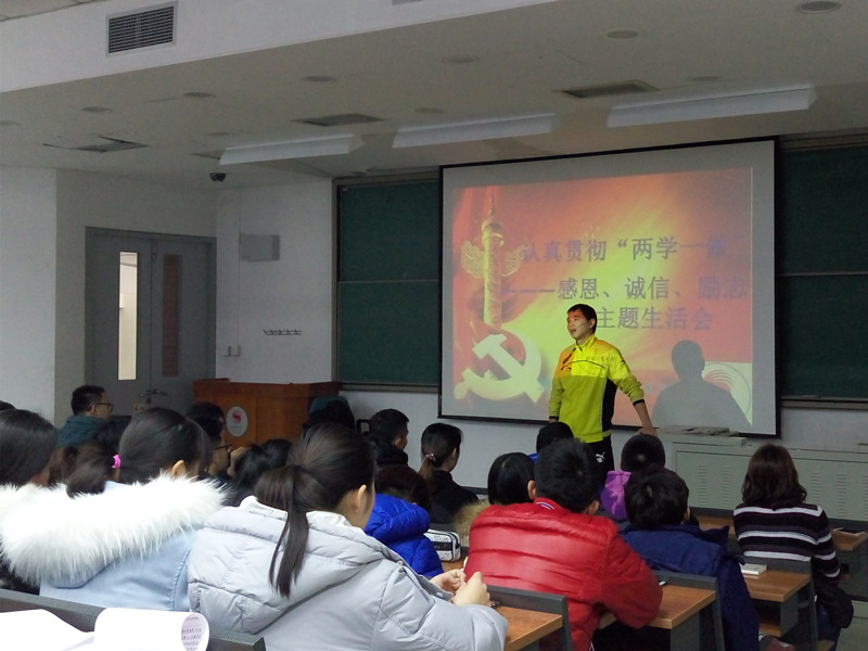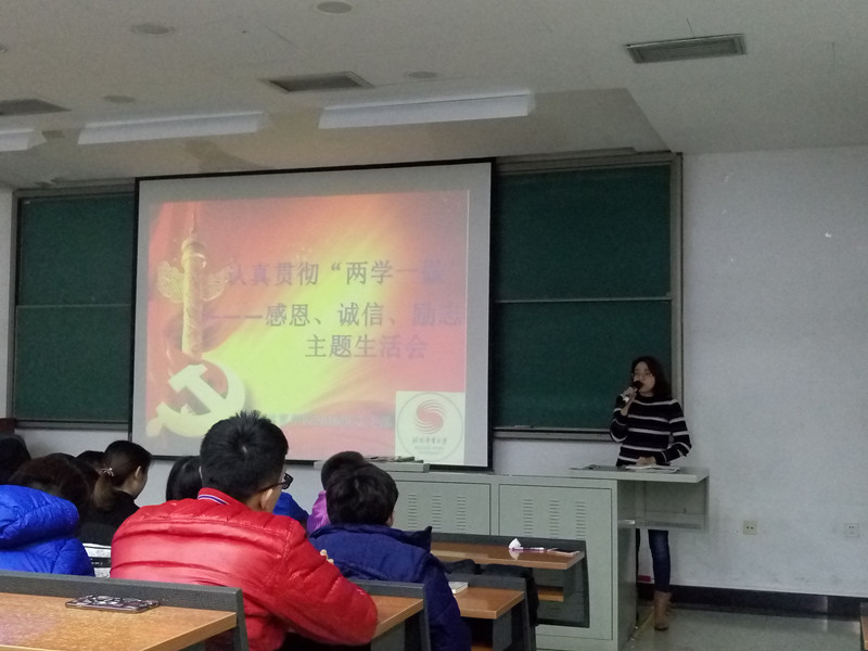 2016年12月28日13:00,best365英国在线体育2016级积极入党申请人和优秀团员在党支部书记张怀川老师的组织下,于教学楼214教室开展认真贯彻“两学一做”——感恩、诚信、励志主题生活会。