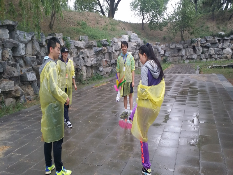 活动开始,11个队伍浩浩荡荡地冲向发卡点,争抢属于自己队伍的印章卡,旋即百余人便奔向四面八方。本次活动中,参赛队伍的名字均用水果命名,而工作人员们则化身果农,等待队伍到达站点进行“采摘”工作。每支队伍到达相应的站点之后,立即向工作人员询问游戏规则,“心灵脚巧、舒筋活血、头顶神功……”,这些有着奇怪名字、妙趣横生的趣味游戏。因是体育活动类项目,故更加凸显本次活动特色。本次活动共设置10个关卡,每个关卡都设有不同的趣味游戏。为胜出比赛,各队伍非常努力,都纷纷使出各种奇招,争分夺秒地完成任务后又一路小跑的赶往下一个站点。有些参赛队伍对圆明园比较熟悉,很快就找到工作人员所在的地点,但是有部分队伍就显得有些尴尬,费尽心思也无法找到地点,只能靠手中的地图来帮忙。比赛开始不久下起了雨,但是热情的参赛选手们一刻也不愿耽搁,全程用跑步代替步行,赶往比赛的终点。最终,由学生会宣传部五名男生所组成的“草莓队”摘得本次“三走”系列活动之最强身体挑战赛的桂冠。